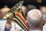 Mit „Lord Tullamore“ als eindrucksvolle Hommage an irische Folk-Musik – übrigens eines der Lieblingsstücke des neuen Dirigenten – meldete sich das Orchester aus der Pause zurück und rückte dann zunächst die Posaunenspieler ins Rampenlicht: Dominik Gasse, Christina Leuschner, Robin Schiller, Stefani Otto, Katharina Wiese und Burkhard Otterbach spielten die mitreißende „Trombone Show“ des Komponisten Jaruslav Zemann mit leidenschaftlicher Hingabe für ihr Instrument.