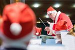 Die musikalische Stimmung im zweiten Konzertteil prägte ansonsten die Vorweihnachtszeit: Eingestimmt von „Sleigh Ride“, einem Klassiker der US-amerikanischen Weihnachtsgenres, lud das Orchester seine Zuhörer zum Mitsingen ein; „Macht hoch die Tür“ und „O du fröhliche“. Natürlich stellte Stephen Cornell auch hier hohe Ansprüche ans Publikum: Ein so großer Chor müsse wohl in der Lage sein entsprechend laut zu singen, forderte der Dirigent, der zwischenzeitlich ein Nikolauskostüm übergezogen hatte.